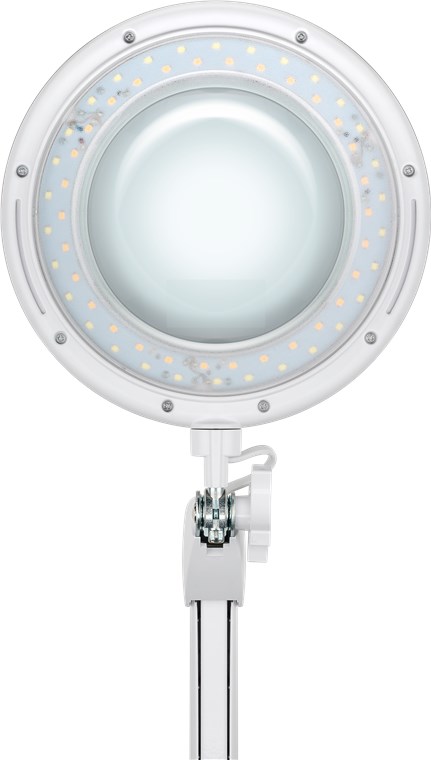 • Tête de loupe inclinable jusqu'à 100° et orientable à 250°, diamètre de loupe de 127 mm avec éclairage annulaire LED harmonieux.