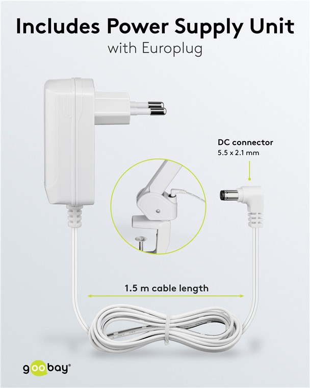 • Le support de la lampe loupe est adapté aux plateaux de table jusqu'à 50 mm d'épaisseur, pince de table de rechange : 77460, support mural adapté : 55771.