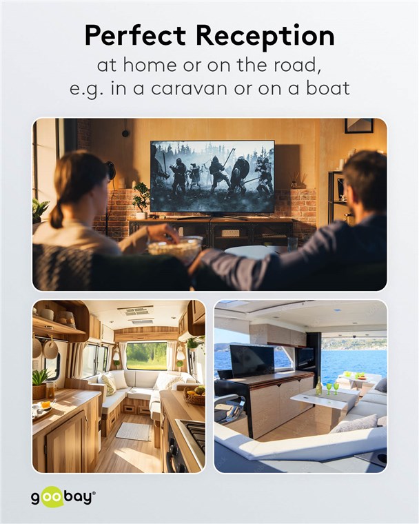 - antenne intérieure pour la réception de signaux TV analogiques et numériques dans la gamme VHF (174 MHz - 230 MHz) et UHF (470 MHz - 862 MHz)