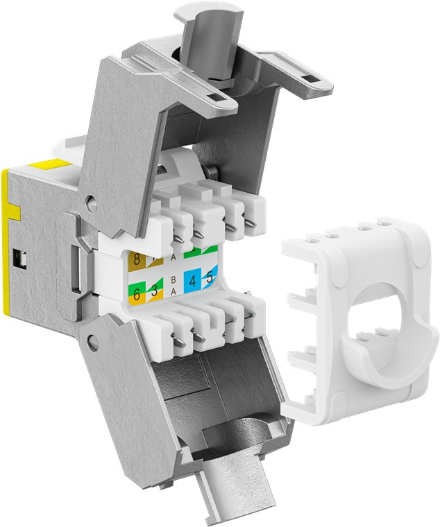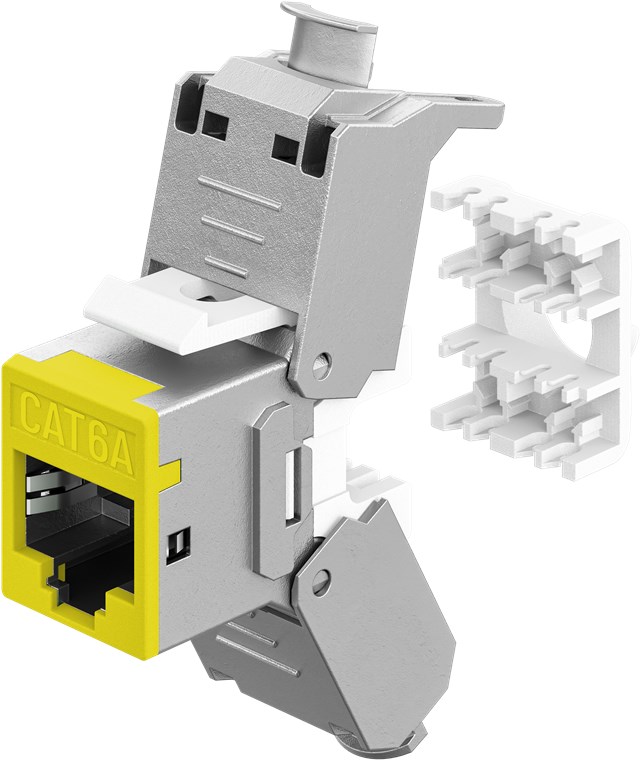 • Module Keystone CAT 6A au design fin avec une largeur de 16,6 mm pour une installation peu encombrante dans le panneau de brassage – plus jamais de problèmes d'espace lors de l'insertion de plusieurs modules côte à côte