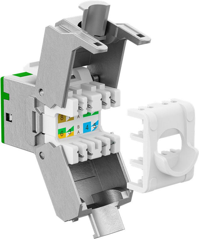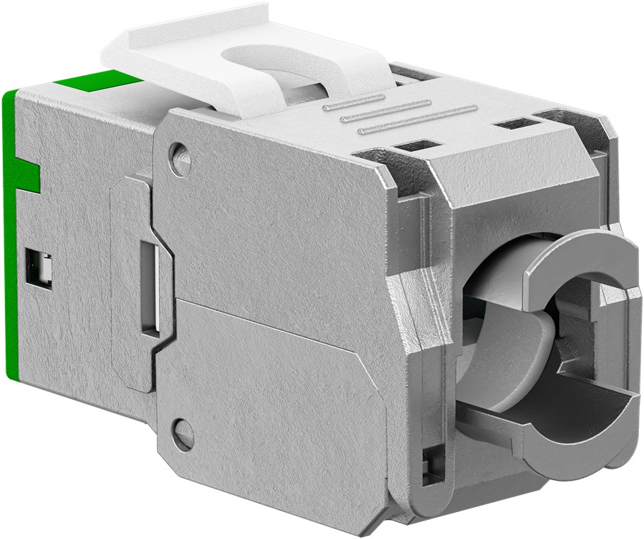 • Module Keystone CAT 6A au design fin avec une largeur de 16,6 mm pour une installation peu encombrante dans le panneau de brassage – plus jamais de problèmes d'espace lors de l'insertion de plusieurs modules côte à côte