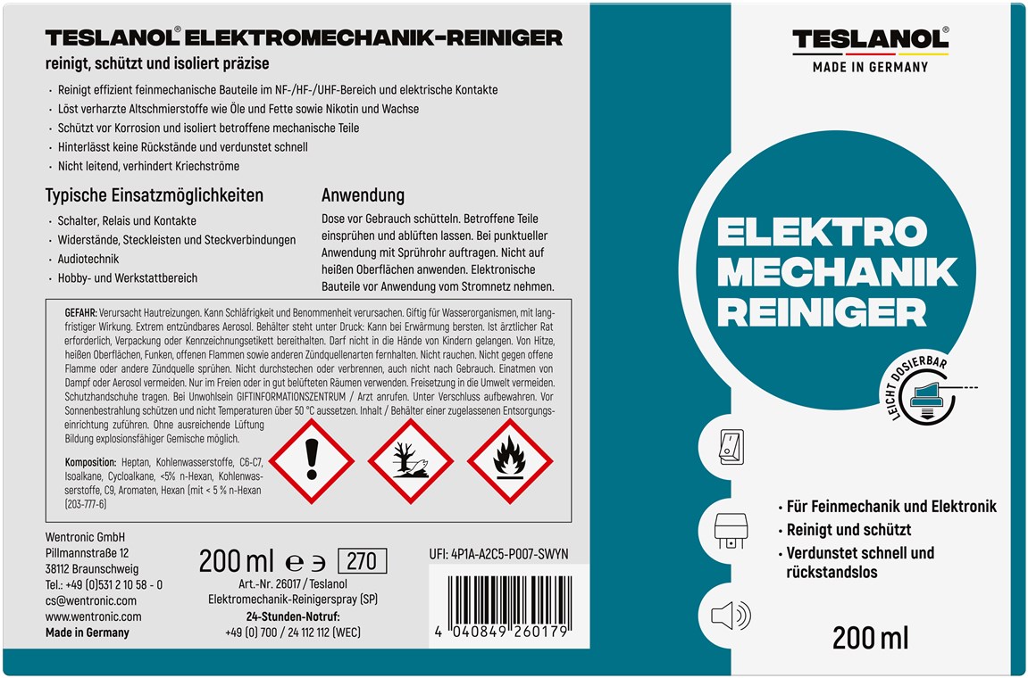 • Le spray nettoie efficacement les composants mécaniques de précision dans le domaine BF/HF/UHF et les contacts électriques
