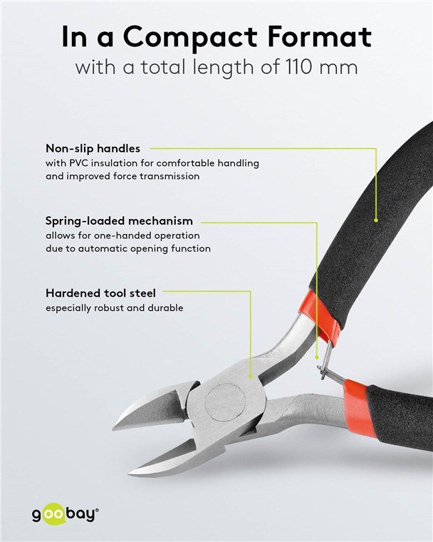 - Pince électronique compacte avec ressort à double lame pour couper avec précision les fils, les torons, les câbles et les clous