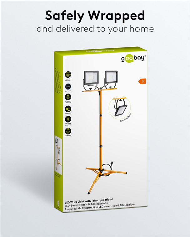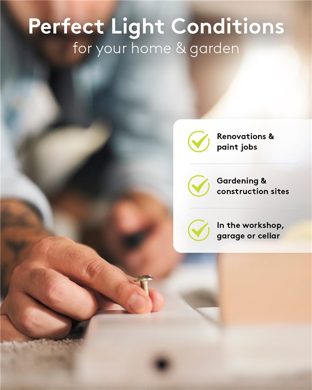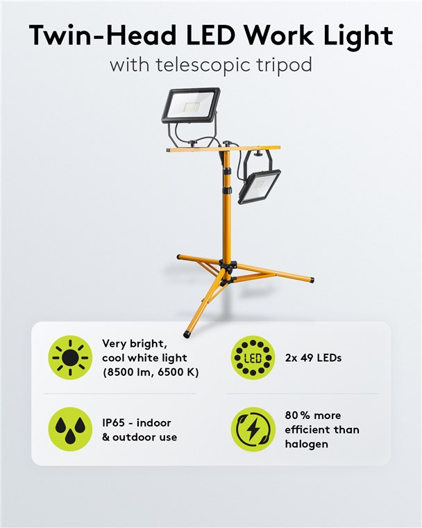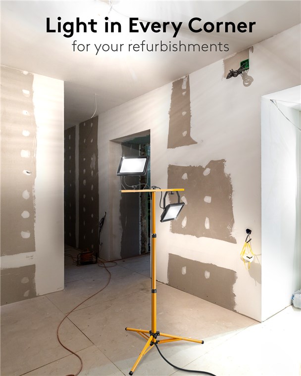 - Projecteur de chantier à deux têtes "Plug & Play" avec éclairage intensif pour la rénovation, l'atelier, le garage et la cave