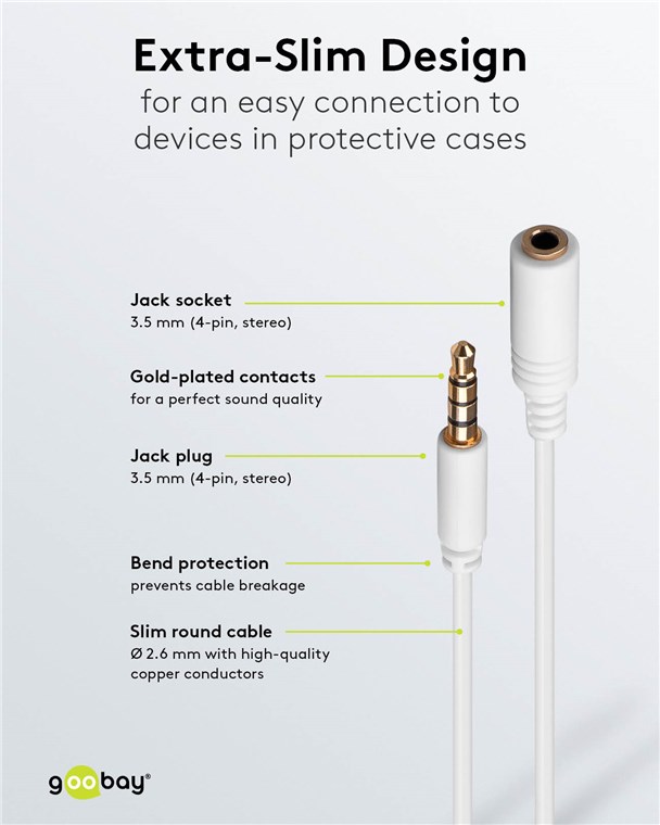- Pour rallonger les câbles audio avec fiche jack 3,5 mm, utilisés par ex. pour les casques stéréo avec microphone.
