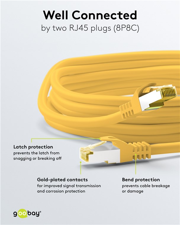 - La protection anti-pli et la solide gaine protègent le câble Ethernet de manière optimale contre les ruptures de câble