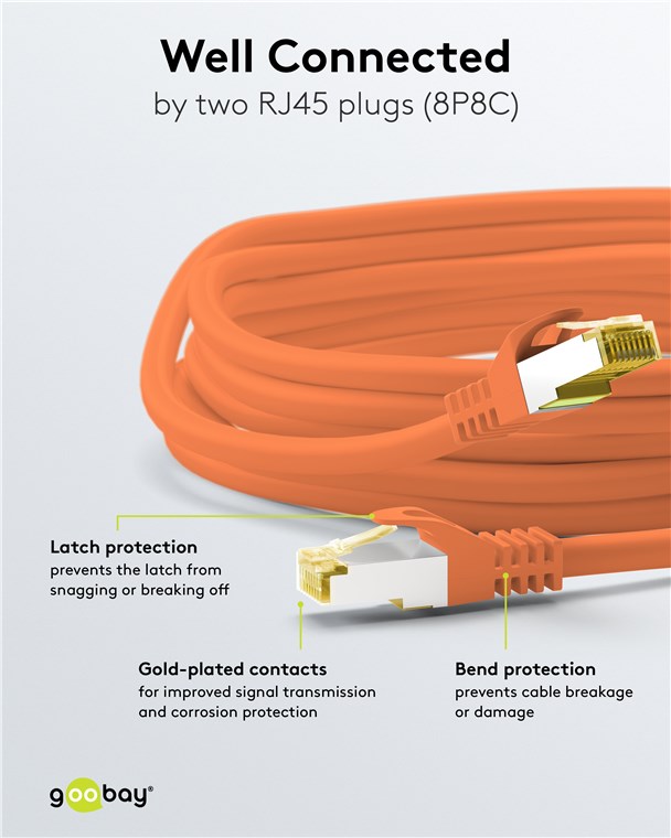 - La protection anti-pli et la solide gaine protègent le câble Ethernet de manière optimale contre les ruptures de câble