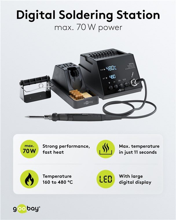 Station de soudage avec finition brillante : La station de soudage compacte dispose de toutes les caractéristiques techniques dont tu as besoin pour tes projets de bricolage. Elle chauffe jusqu'à la température de soudage en seulement 8 secondes et atteint sa température maximale en 11 secondes. Les températures cibles et réelles sont affichées en grands chiffres LED sur un écran stylé avec une finition noire brillante. Particularité : Utilise le bouton CH pour enregistrer la température souhaitée pour le prochain travail de soudage.