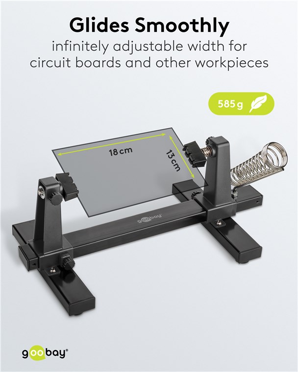 Un contrôle parfait lors du soudage et du bricolage : Le support de circuit imprimé maintient la pièce en place et libère les deux mains pour un travail manuel précis. Le plus exclusif : Contrairement aux autres porte-pièces, celui-ci possède un support pratique pour le fer à souder. Ajustement facile, travail précis - pour tous les professionnels et les bricoleurs !