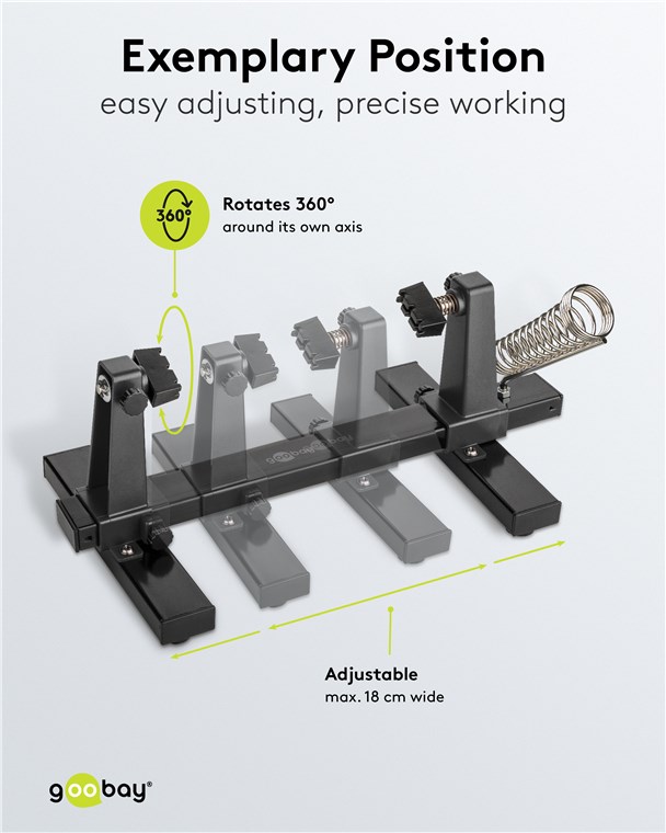 - En tant que troisième main, le support de circuit imprimé est parfait pour de nombreux projets de bricolage, p. ex. travaux de soudure sur des circuits imprimés, réparation de bijoux, modélisme et peinture