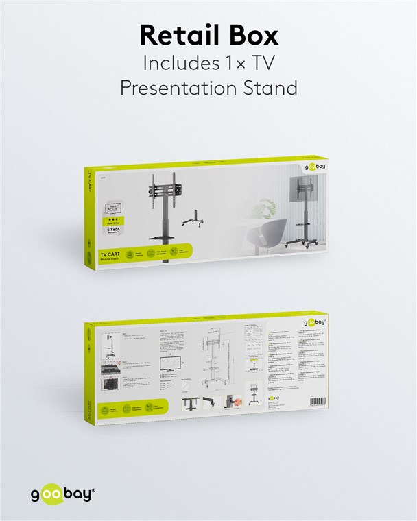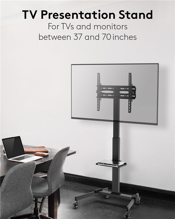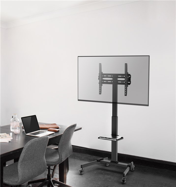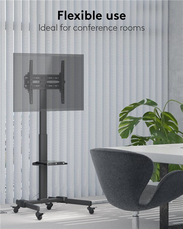 • Support TV mobile avec 4 roulettes verrouillables pour une utilisation flexible au bureau, dans les salles de formation ou dans les zones d'accueil