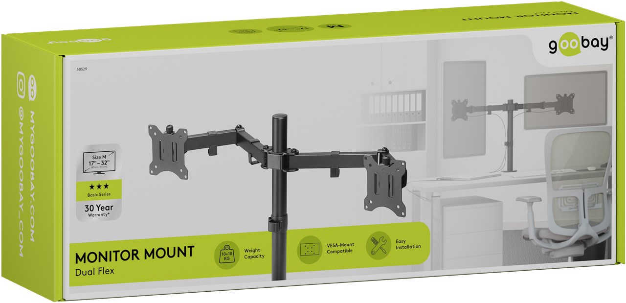 Angle de vision flexible, maintien sûr. Les bras pivotants flexibles te permet d'incliner, de pivoter et de tourner le moniteur pour le placer dans la position idéale. Pour le télétravail, les jeux vidéo ou ton flux de travail créatif. Le support d'écran se fixe solidement et en toute sécurité à ton bureau à l'aide d'une pince ou d'une vis, sans perçage fastidieux. Le pied élancé offre un look épuré et libère de l'espace sur ta table.