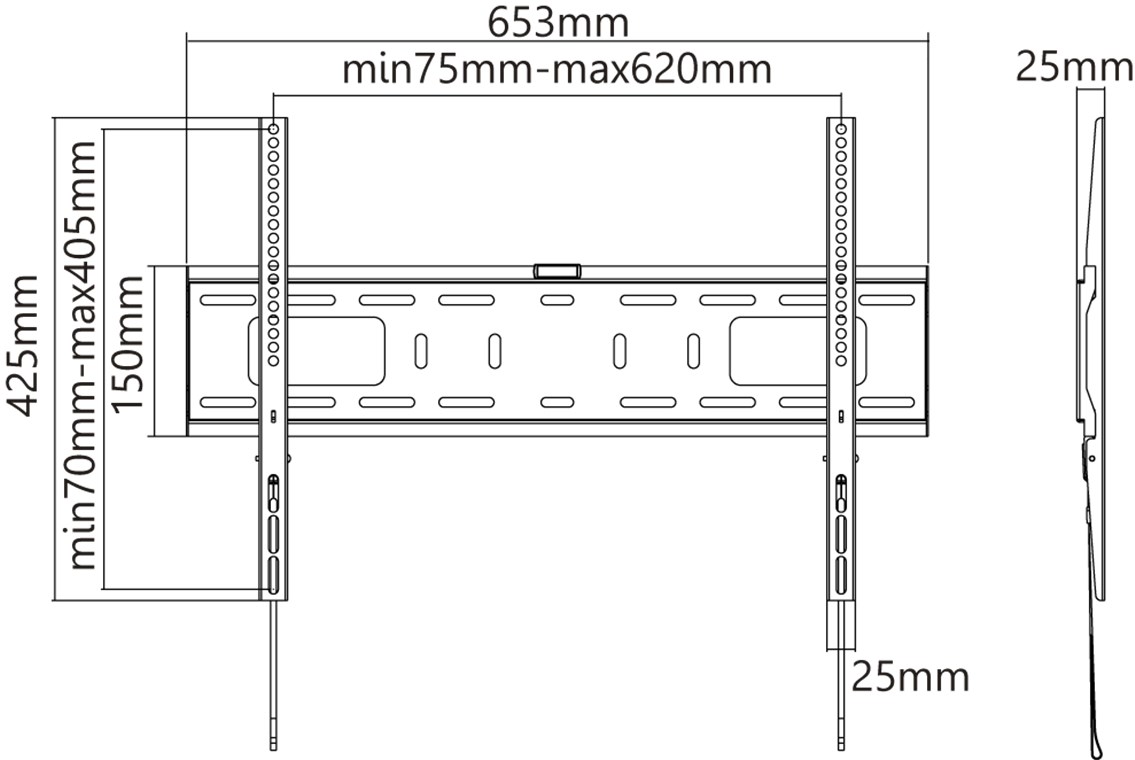 - Grâce au support mural extrêmement plat, la télévision reste élégamment plate et peu encombrante sur le mur avec seulement 25 mm.