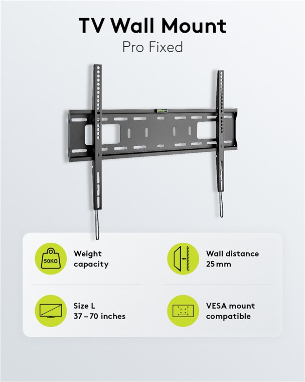 Le support mural TV pour la plupart de 37 à 70 pouces (94–178 cm) téléviseurs avec un poids maximum de 50 kg. La conception ultra mince est seulement 25 mm du mur, pour compléter le look élégant des téléviseurs ultra-minces. La fermeture de ressort de verrouillage automatique avec cordon facile à la résolution permet à votre écran plat sur le mur pour la fixation facile et sécurisé. Le téléviseur peut être déplacé vers la gauche et à droite sur la plaque murale pour le positionner avec précision.