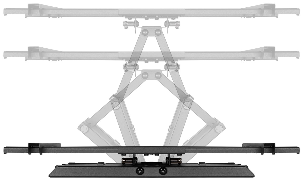 - L'articulation réglable du bras en ciseaux soutient l'extension et stabilise le mouvement.