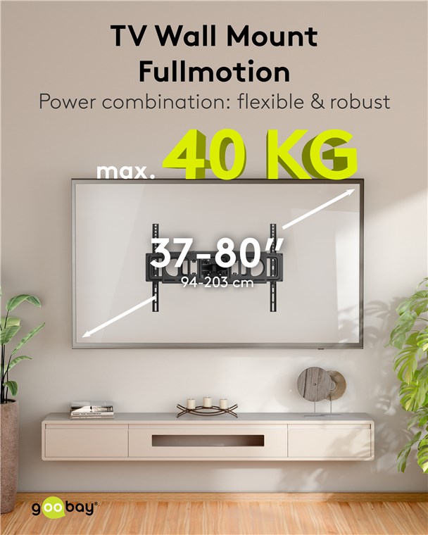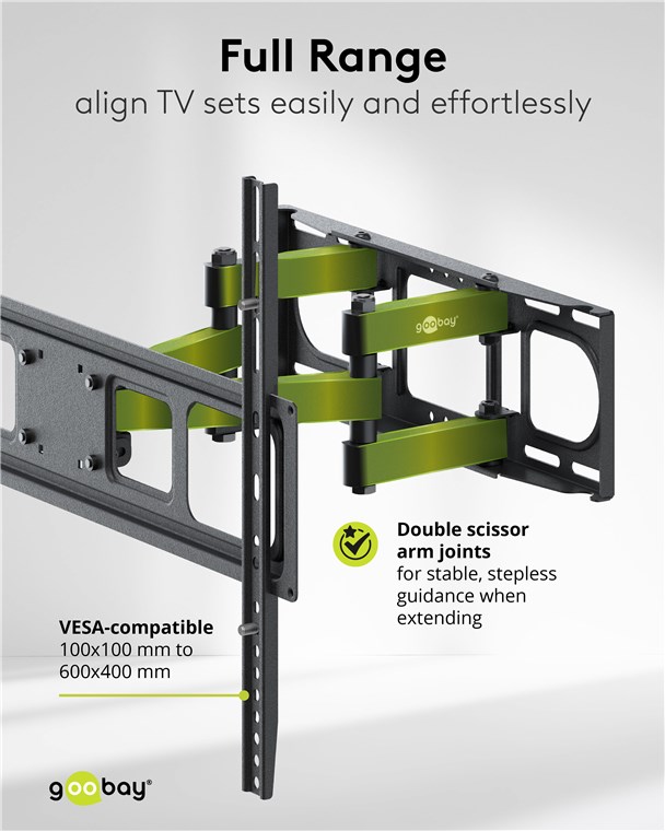 - Support TV extrêmement flexible pour un angle de vision optimal : inclinable de +2/-16° (haut/bas), pivotant de +60/-60° (gauche/droite), 34,8 cm d'extension