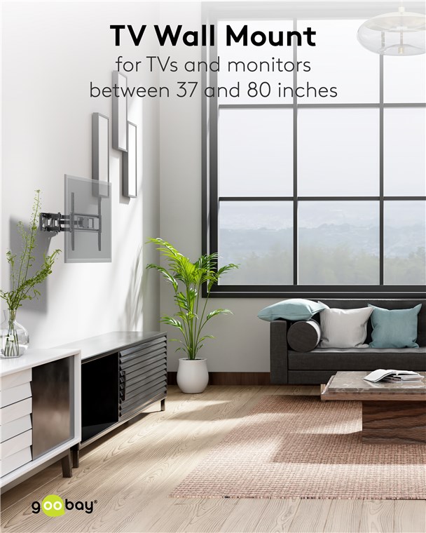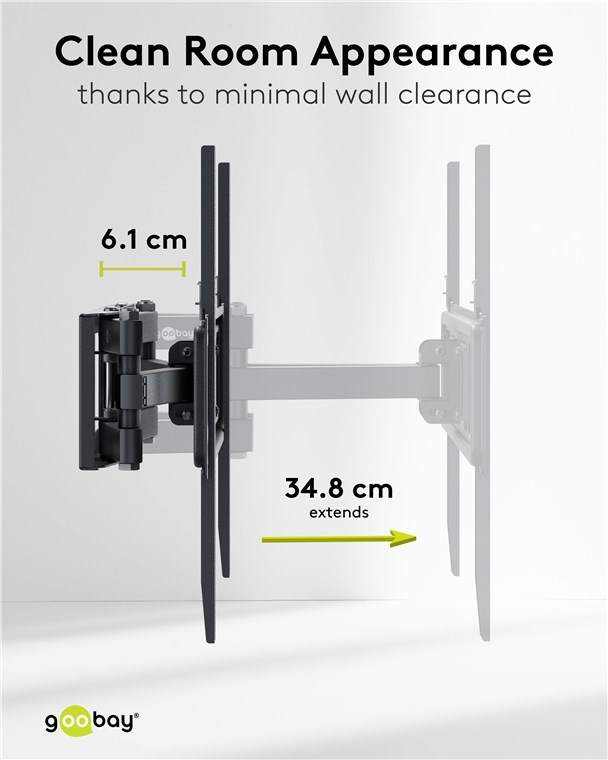 - Pour un aspect discret de la pièce, le support atteint une distance minimale de 6,1 cm du mur, de sorte que le téléviseur ne dépasse pas dans la pièce
