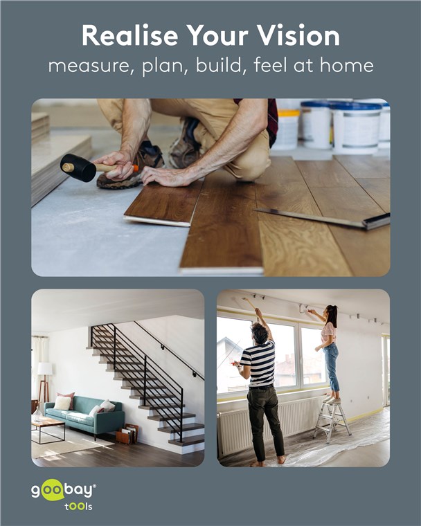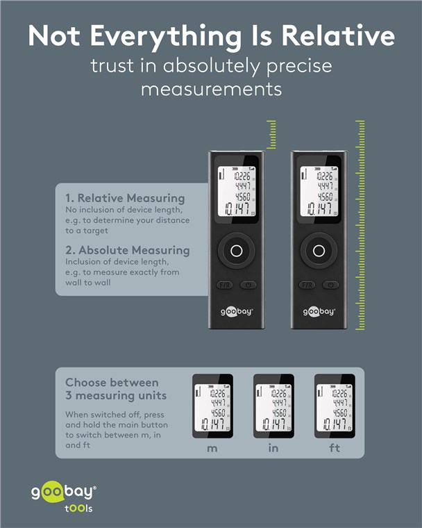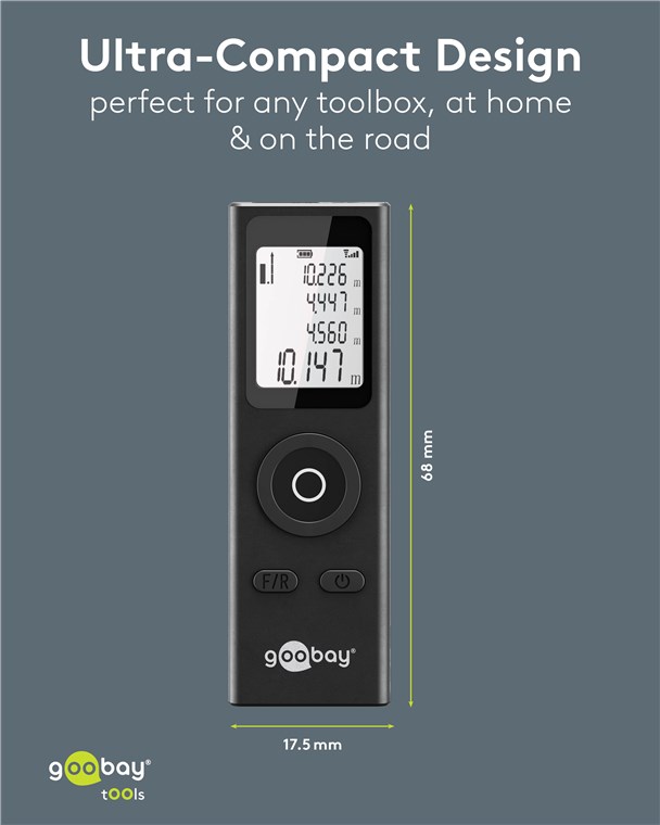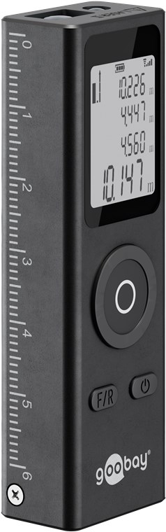 - Télémètre ultra-compact pour la mesure précise des surfaces de pièces, de sols et de murs lors de travaux de rénovation, p. ex. lors de travaux de peinture ou de pose de carrelage, de stratifié ou de parquet