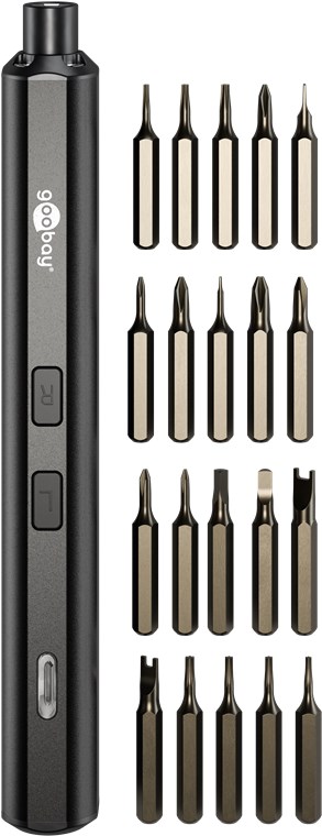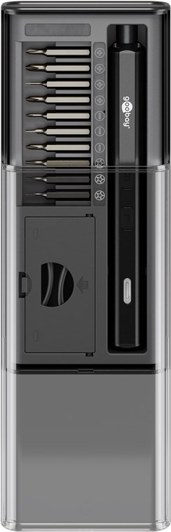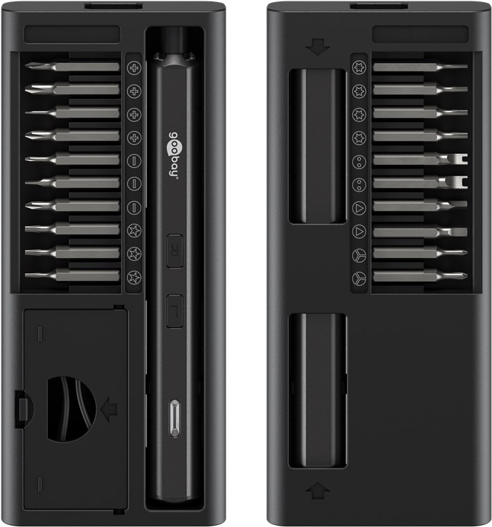 20× 28 mm embouts, boîte de rangement, câble de charge USB-C™ vers USB-A, Poignée de tournevis avec support magnétique
