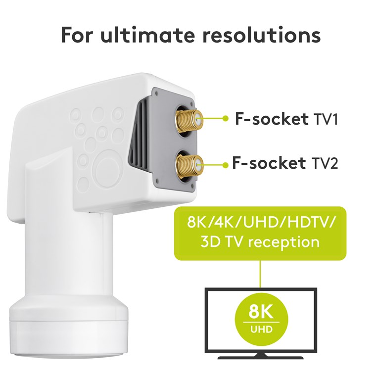 LNB satellite numérique (DVB-S2) pour 2 abonnés (8K, 4K, UHD, HDTV, 3D)