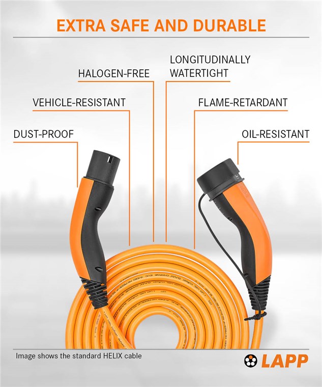 • Le câble de charge de Type 2 de LAPP permet une charge simple et rapide jusqu'à 22 kW sur une station de charge publique ou privée ou une Wallbox.