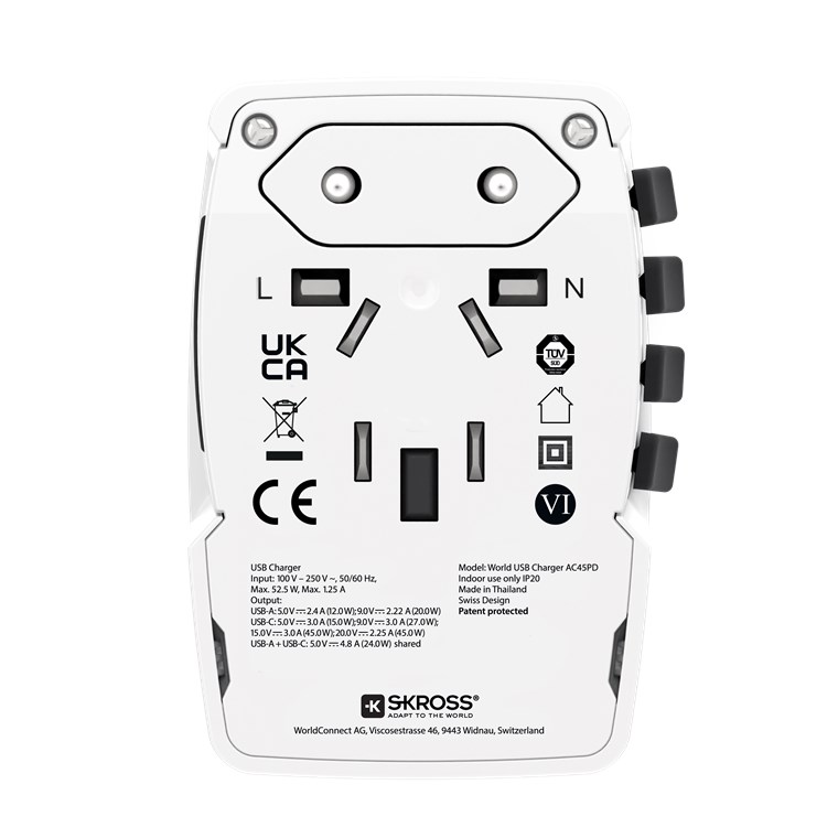 Ciao, presa di corrente! L'adattatore compatto World USB Charger AC45PD è il compagno di viaggio perfetto per qualsiasi destinazione in tutto il mondo. Grazie alle sue porte USB integrate e alle versatili prese di corrente, offre una completa indipendenza energetica per computer portatili, smartphone, fotocamere e dispositivi indossabili in oltre 220 paesi. Così potrete concentrarvi sulle cose importanti in vacanza: Relax completo con la massima energia.
