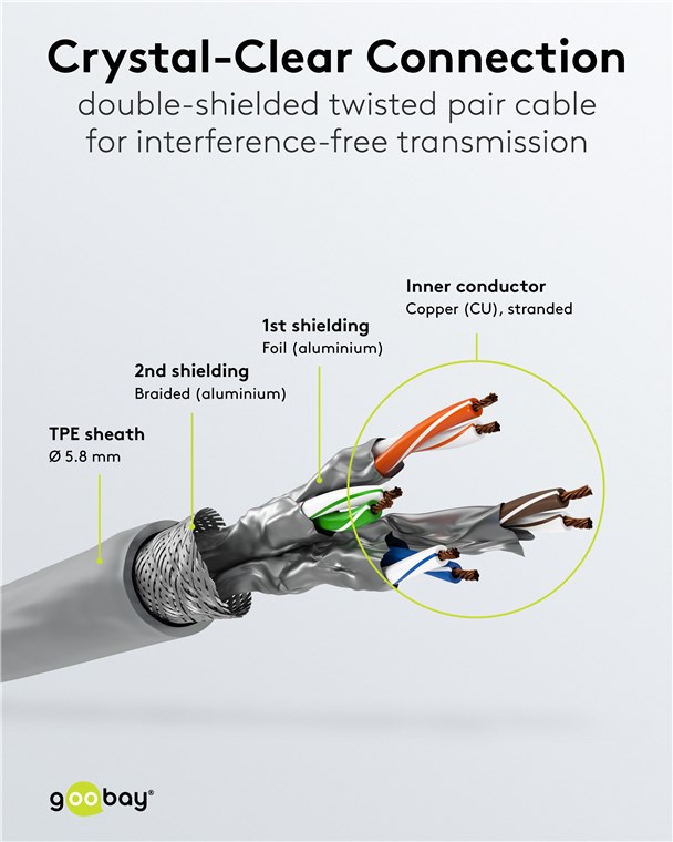 - Facile da collegare: Cavo LAN a doppia schermatura con 2x spine RJ45 per il collegamento di componenti di rete a casa, in ufficio, nell'armadio server, ecc.