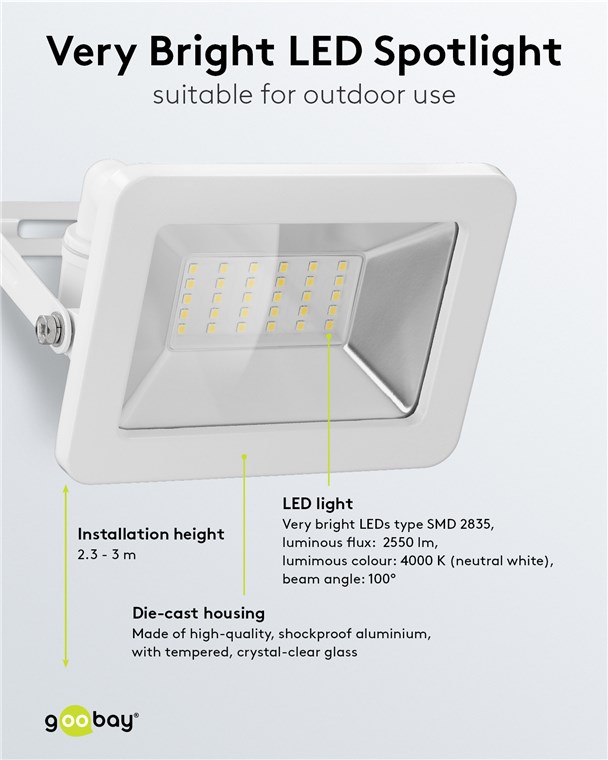 • Con un ampio angolo del fascio di 100°, il faro LED è adatto a illuminare le facciate.