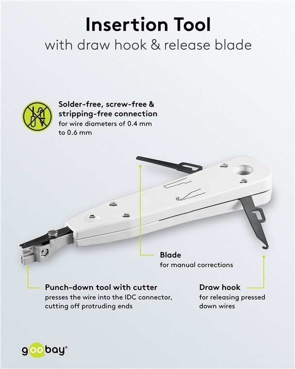 - Adatto a tutti i cablaggi di rete, ad es. in scatole da incasso e da superficie, pannelli patch o cavi di installazione