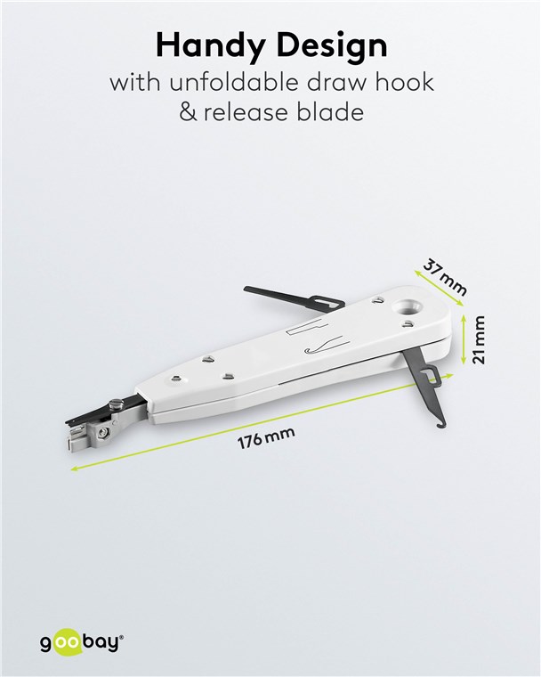 - Pratico strumento (punch down tool) per la posa di fili su strisce IDC, in prese di rete e pannelli patch