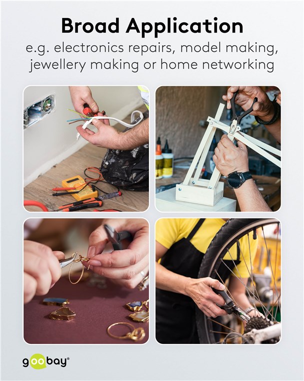 • Per un'ampia gamma di applicazioni, dalla riparazione di componenti elettronici al modellismo, alla creazione di gioielli o al networking domestico
