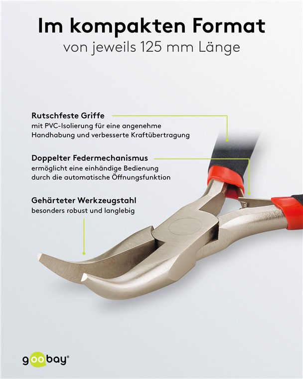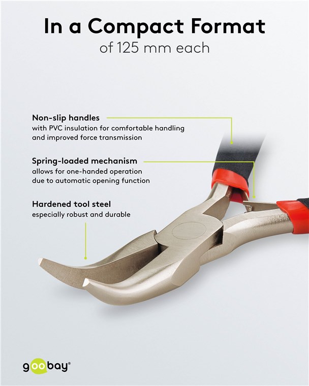 • Il pratico meccanismo a molla delle pinze consente di lavorare con una sola mano e di lavorare comodamente grazie alla funzione di apertura automatica