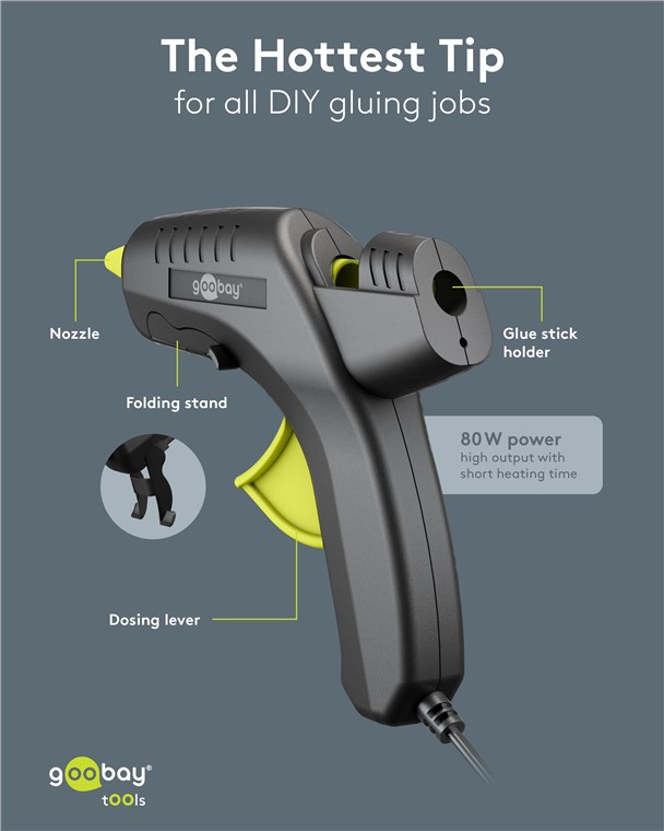 Il potente must-have per creativi e fai-da-te: Con i suoi 80 W raggiunge rapidamente la temperatura di esercizio, la pistola per colla è l'assistente pratico per molti progetti di decorazione e fai-da-te. Dalle decorazioni al bricolage con collage fino alla riparazione di ceramiche, la pistola è l'aiuto veloce per tutti i lavori di riparazione in casa. Accendere, riscaldare, iniziare.