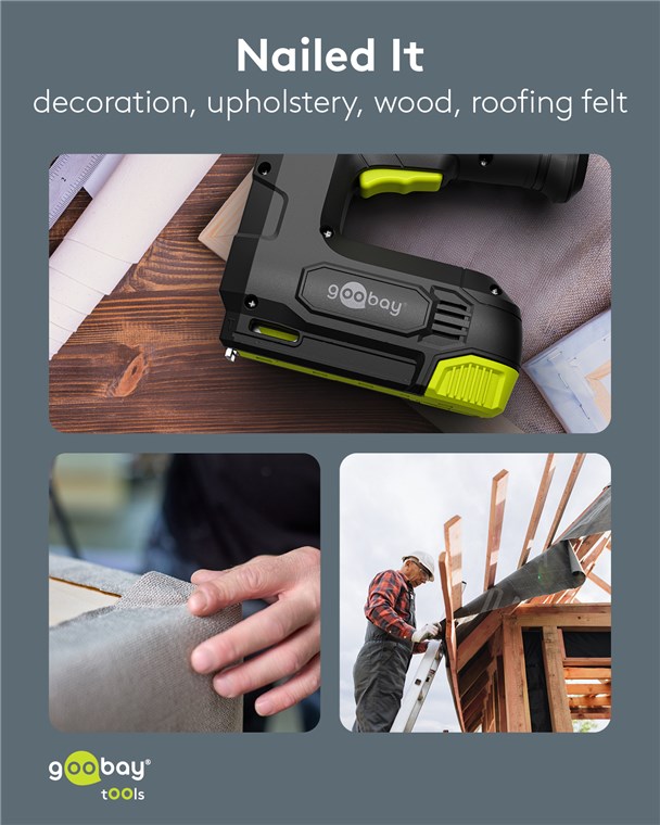 Dritto al punto: La graffatrice elettrica è un potente aiuto per riparare mobili, imbottiti e fissare materiale isolante o battiscopa. Grazie al funzionamento a batteria senza fili, la sparachiodi elettrica è particolarmente versatile e garantisce la massima libertà di movimento.