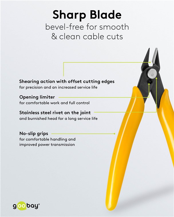 La soluzione tagliente: Grazie ai taglienti sagomati con precisione e alla forma appuntita, le pinze assicurano il taglio più netto dei cavi anche nei punti più difficili da raggiungere. L'aiuto perfetto per il fai da te di cavi, internet e installazioni elettriche.