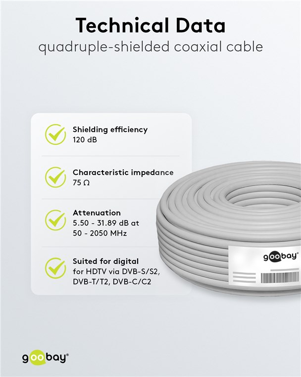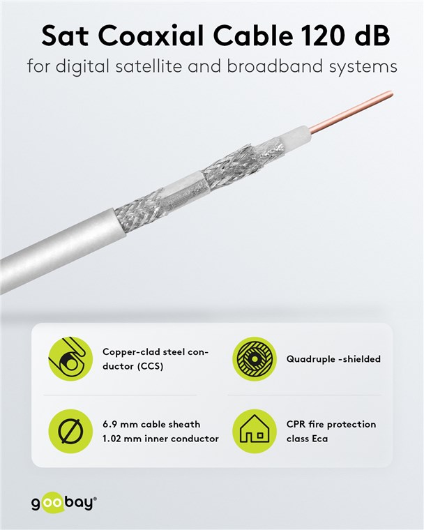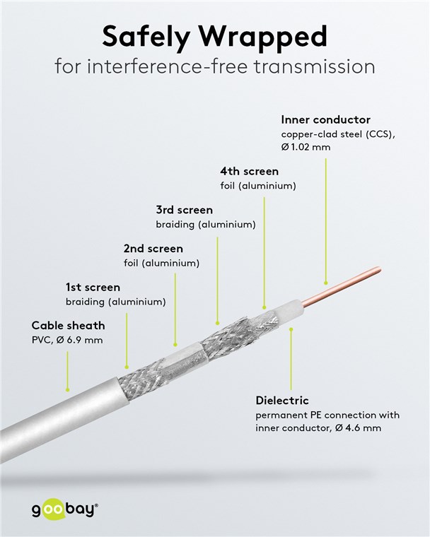 - 4-krotnie ekranowany kabel satelitarny do transmisji bez zakłóceń