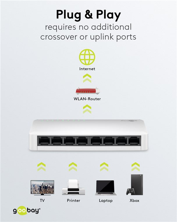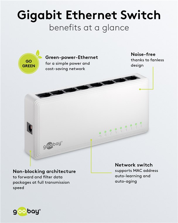 Nasze akcesoria sieciowe przesyłają sygnał w maksymalnej jakości i prędkości. Wysokiej jakości materiały, wytrzymałe obudowy i precyzyjnie dopasowane styki to cechy charakterystyczne naszych przełączników sieciowych. Goobay ma zawsze odpowiedni produkt do skonfigurowania stabilnego połączenia internetowego, np. dla sieci domowych lub firmowych. Po prostu. Wszystko. Czego potrzebujesz!