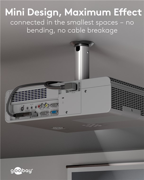 - Kąt 90° wtyczki umożliwia połączenie pod kątem w bok nawet w najmniejszej przestrzeni, np. w tylnych gniazdach urządzeń