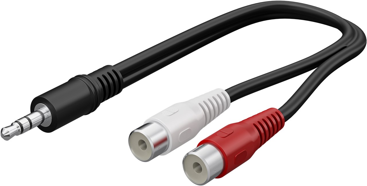 - Kabel adaptera firmy Goobay RCA z 1x wtyczką jack i 2x gniazdami RCA przesyła sygnały audio w najlepszej jakości dźwięku.