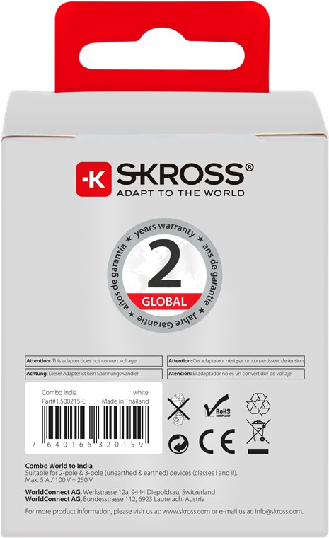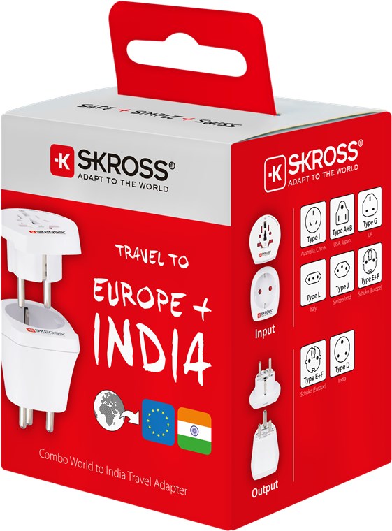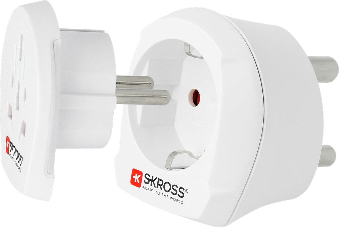 - do podłączania urządzeń z ponad 150 krajów do gniazd w Indiach i Europie (styk ochronny)