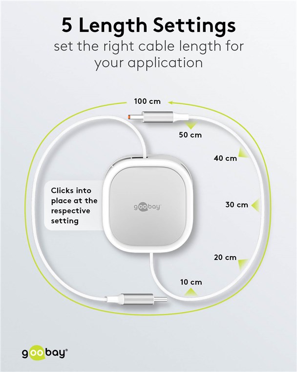 - 5-stopniowa regulacja: Kabel USB można wydłużyć do pięciu różnych długości, pociągając jednocześnie za oba końce kabla