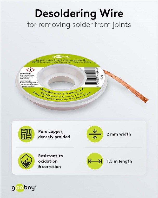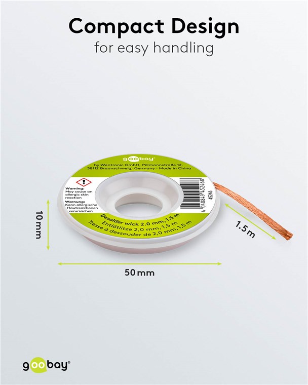 Drut do odlutowywania małych spoin lutowniczych, który dociera nawet do trudno dostępnych miejsc z doskonałym zachowaniem przy zginaniu. Dzięki bardzo dobremu działaniu kapilarnemu drut do odlutowywania usuwa roztopiony lut skutecznie i czysto.