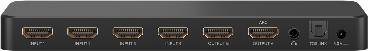 - Przełącznik HDMI™ przesyła do 4x sygnałów wejściowych HDMI™ do 2x wyjść, umożliwiając odtwarzanie obrazu i dźwięku na wielu urządzeniach, takich jak telewizor, projektor czy monitor.