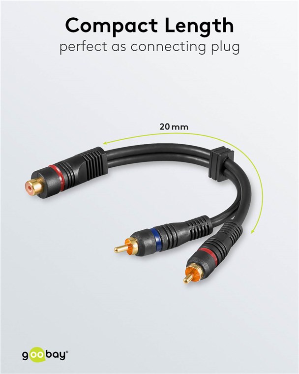 - Kabel adaptera RCA firmy Goobay zapewniający najwyższą jakość dźwięku za pośrednictwem wzmacniacza, telewizora, odtwarzacza CD, konsoli mikserskiej, kina domowego, systemów hi-fi itp.