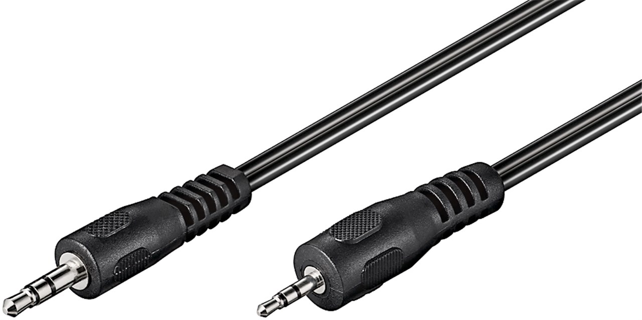 - Kabel audio firmy Goobay do podłączania urządzeń z gniazdem słuchawkowym 3,5 mm do systemów stereo, wzmacniaczy lub głośników z wejściem jack 2,5 mm