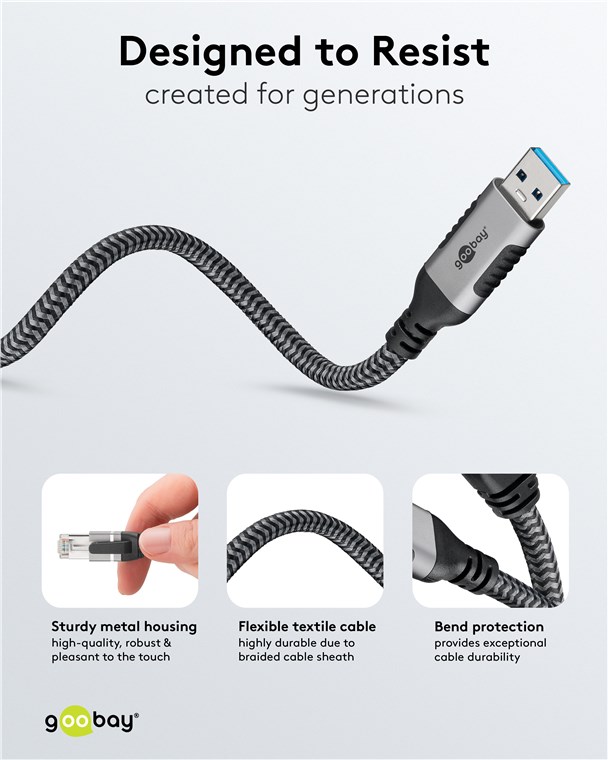 • Pleciona, wytrzymała tekstylna osłona kabla USB jest przyjemna w dotyku i delikatna dla wrażliwych powierzchni