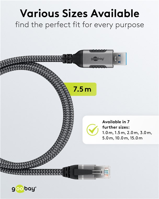 Kabel Ethernet USB-A 3.0 do RJ45, 7,5 m
