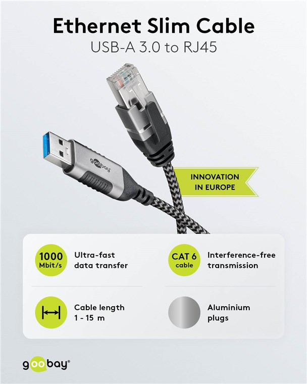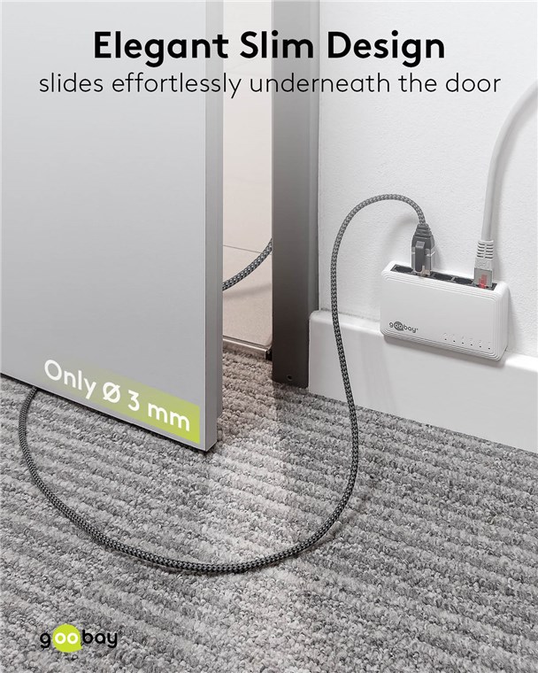 - Elegancka, smukła konstrukcja (Ø 3 mm) kabla CAT 6 zapewnia dyskretny wygląd i jest kompaktowym, lekkim rozwiązaniem podczas podróży i przemieszczania się