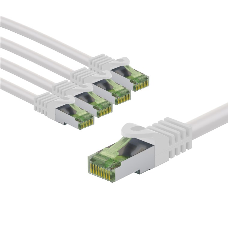 Kabel krosowy CAT 8.1 z certyfikatem GHMT, S/FTP (PiMF), 1 m, biały, zestaw 5