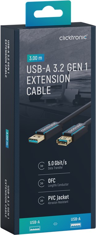 - Przedłużacz kabla Clicktronic jest kompatybilny ze złączami USB 3.0 i USB 2.0 typu A.